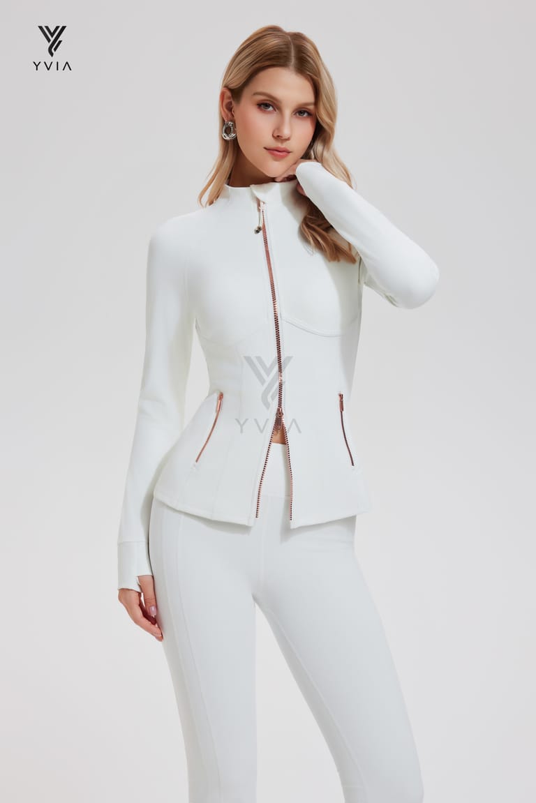 Mẫu áo khoác nữ form ôm cao cấp nhập khẩu được thiết kế theo phong cách thể thao hiện đại, ôm nhẹ theo đường cong cơ thể giúp tôn dáng tinh tế nhưng vẫn đảm bảo sự thoải mái.